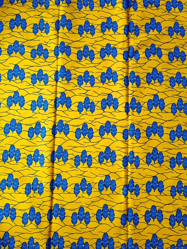 This Special Yellow, Blue and Black African Wax Print Fabric, with ‘3 FEATHERS PATTERN’ is of high grade, made of 100% cotton. It is great for making diverse styles of African Clothing, African Quilts, African Handbags, as well as African Accessories and Upholstery for home decoration. Sold @ £10.99 Per Yard. More than 1 Yard (One Yard) material is on a continuous roll.