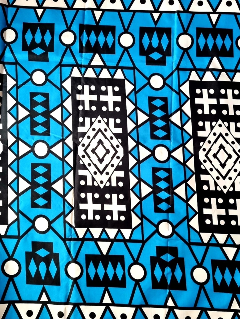African Wax Print Fabric–SAMAKAKA. High Quality ANGOLAN SAMAKAKA (BE) Ankara Fabric. Per Yard | 1 Yard | Sold By The Yard . Blue / White / Black , Polycotton (80% Cotton, 20% Polyester ). It can be used for different types of Trendy Clothing Styles and Crafts . The vibrant colours are retained even after washing.