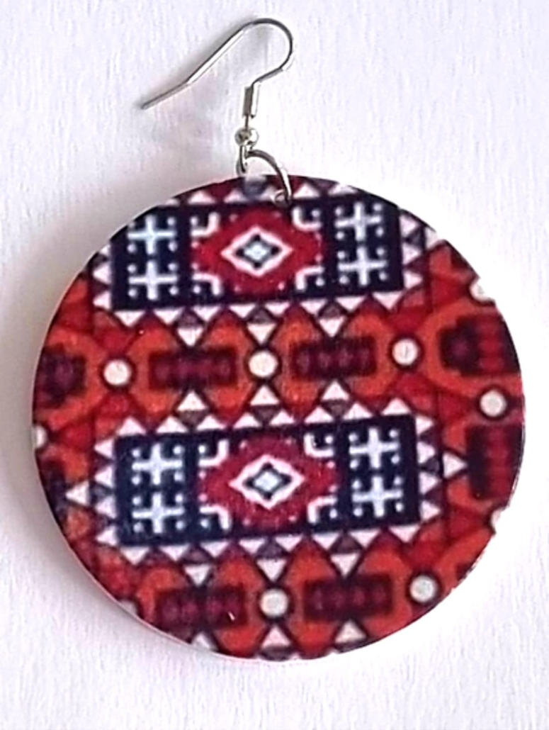 Samakaka Earrings | Samakaka Single-sided Print Earrings | African Dangle Earrings | Angolan Earrings | Handmade Wooden Earrings. SMK1